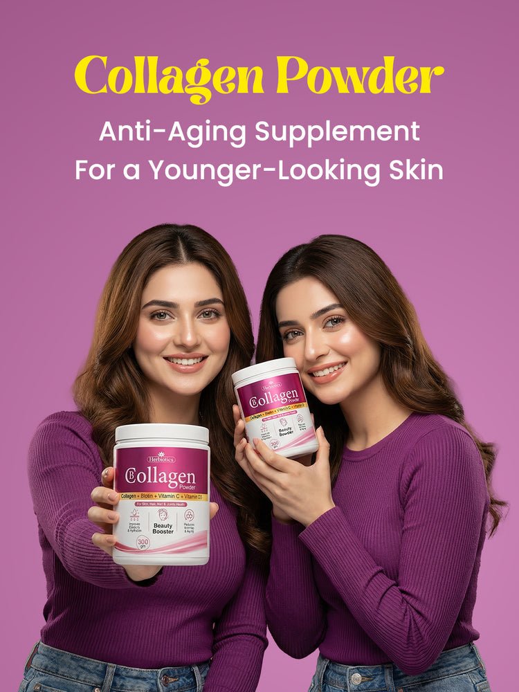 Pakistan's First B Collagen Powder by Herbiotics is a premium beauty supplement designed to support healthy skin, hair, nails, and joints. Enriched with Collagen, Biotin, Vitamin C, and Vitamin D3, it helps replenish essential nutrients that naturally decline with age. B Collagen Powder...